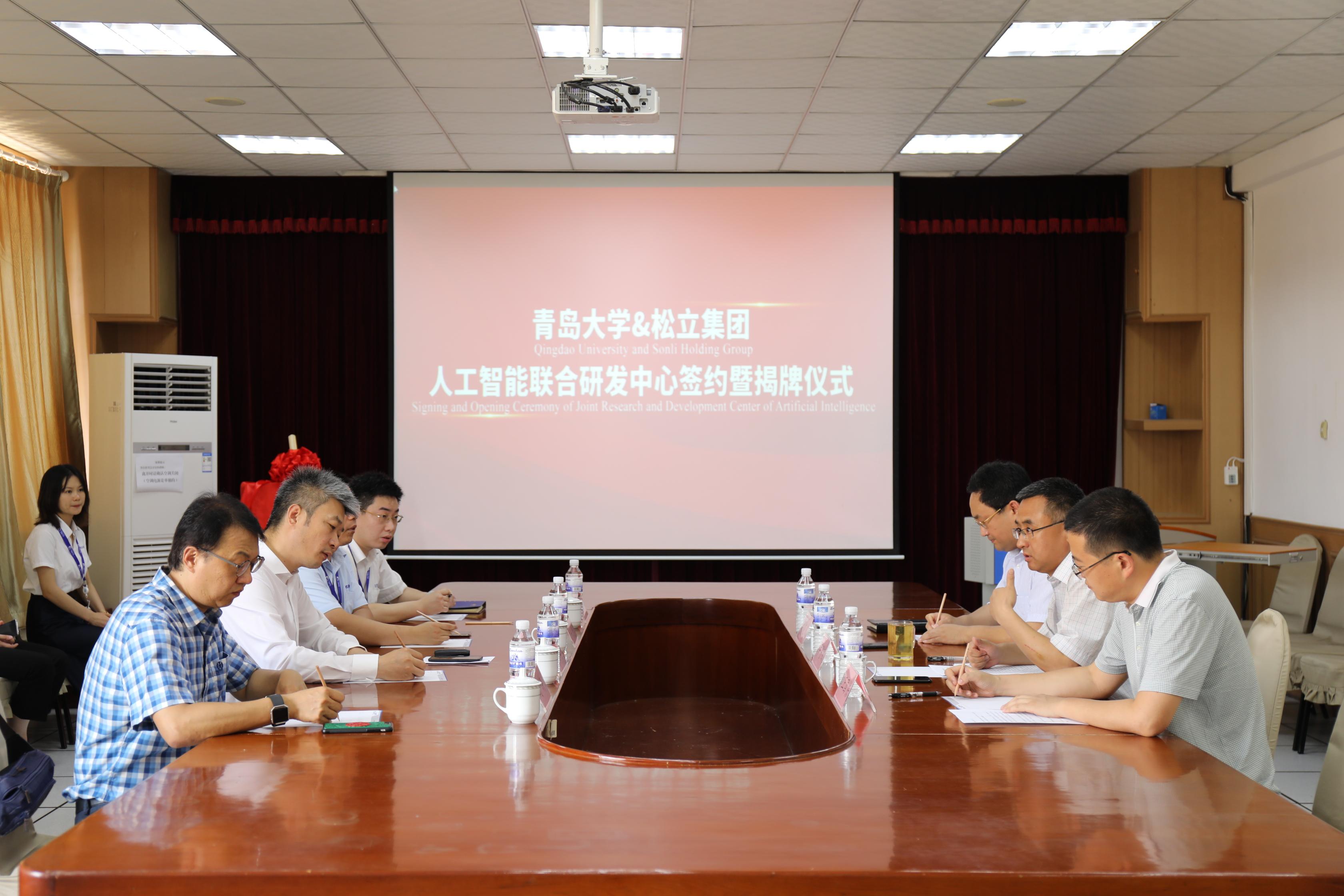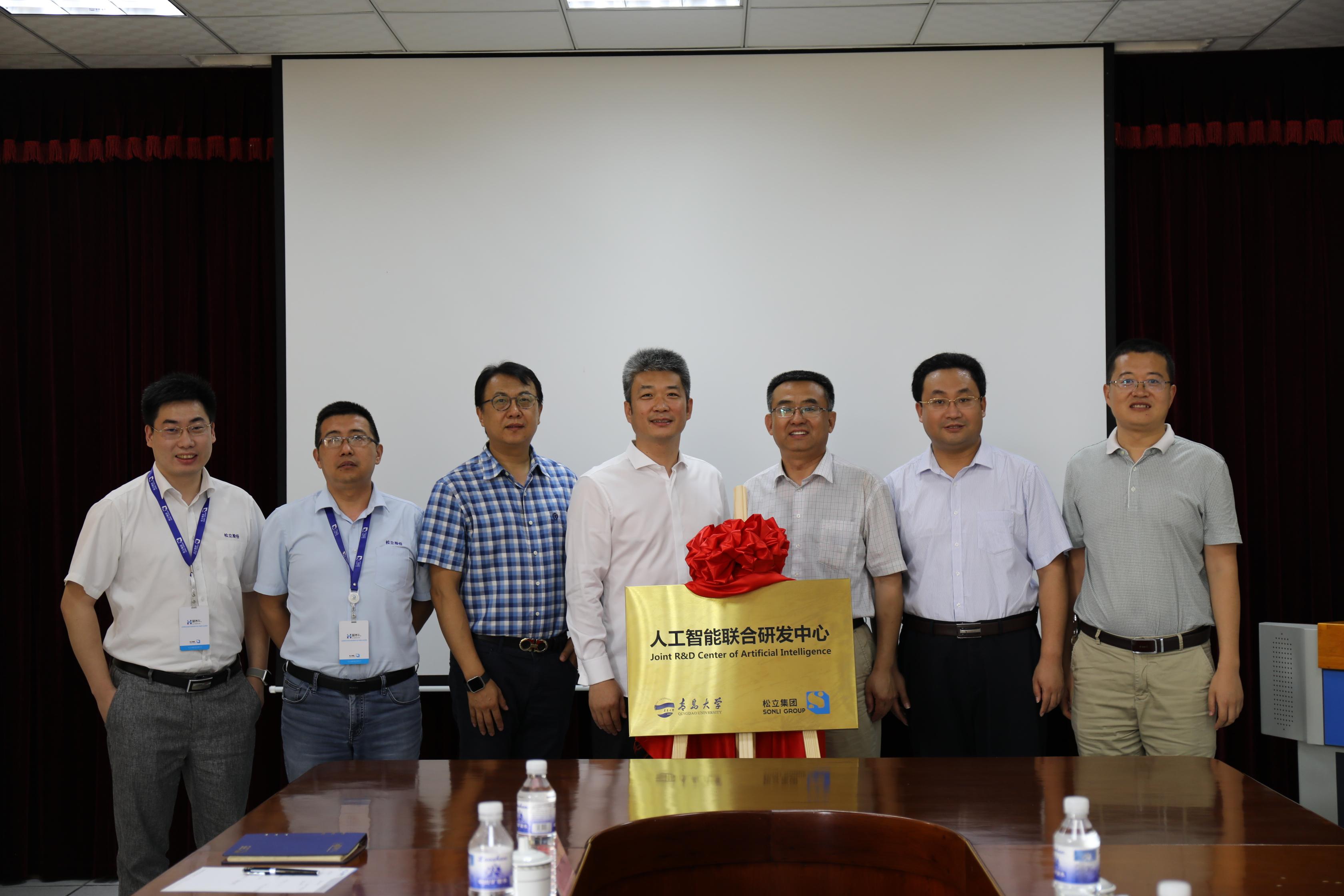7月15日下午,国产自拍av 与松立集团“人工智能联合研发中心”签约暨揭牌仪式在博知楼510会议室举行。院党委书记尹增刚、院长李建波、副院长王国栋及松立集团董事长刘寒松,副总经理高评、王永,研发总监刘瑞出席仪式。