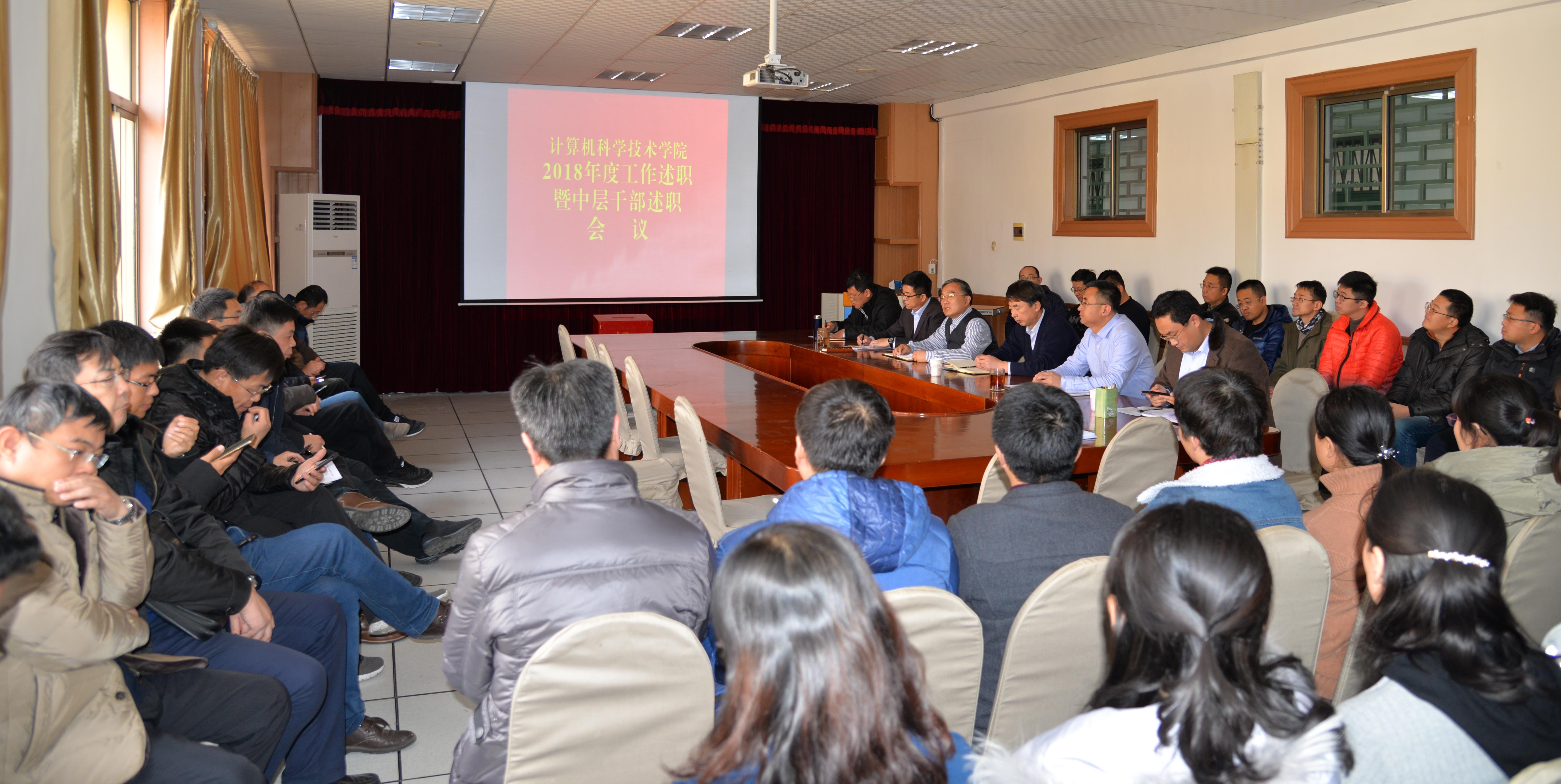 尹增刚、潘振宽、于文、李建波和于佳等班子成员分别就2018年年度个人工作进行了述职。学院党委书记尹增刚代表学院领导班子向全院教职工作了2018年学院述职报告,述职报告结束后,全院教职工对学院中层干部和学院工作进行了民主测评。