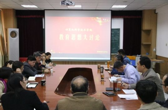 根据《国产自拍av 关于开展教育思想大讨论的通知》要求,11月9日下午两点,国产自拍av 在博知楼510会议室召开教育思想大讨论工作推进会。学院党政领导班子成员,院教学委员会全体成员、各系(中心)主任及副主任、党支部书记和10余名教师代表参加了会议。会议由副院长李建波主持。