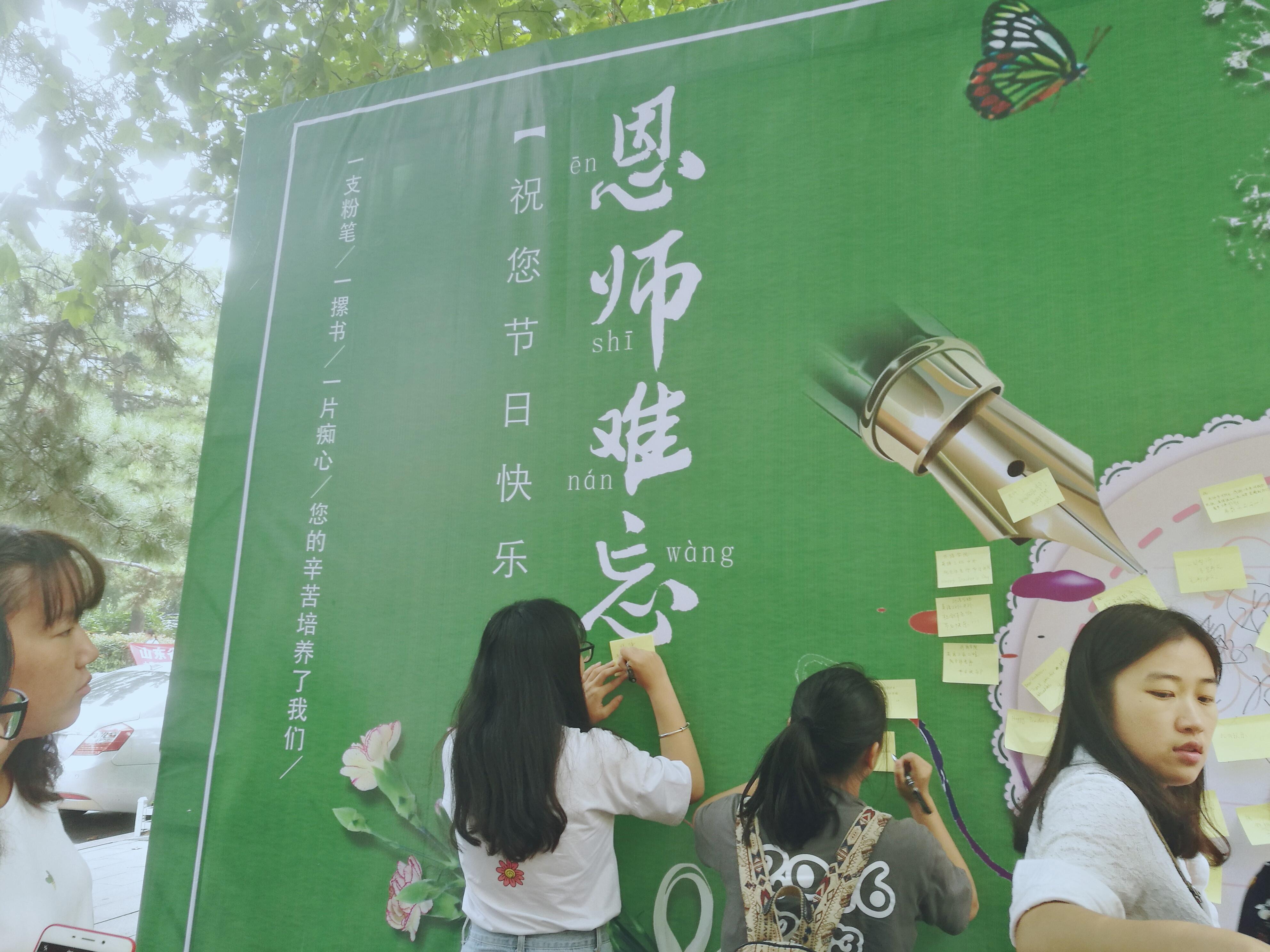 上课前,2016级计算机科学技术二班的同学在黑板上写满给老师的留言;2015级信息安全专业的同学们在班长的带领下,召开了题为“感恩教师节”的主题班会;2015级物联网专业则的学生代表来到了办公室,将手工制作的礼物交到老师手中;在校园内教师节背景墙上,各班同学也都写下了自己心中最想对老师说的一句话。同时,院学生会为老师们精心准备了节日贺卡,正面手绘民族风图案,反面写满对老师的祝福,工工整整、一笔一划都是对老师的感恩。