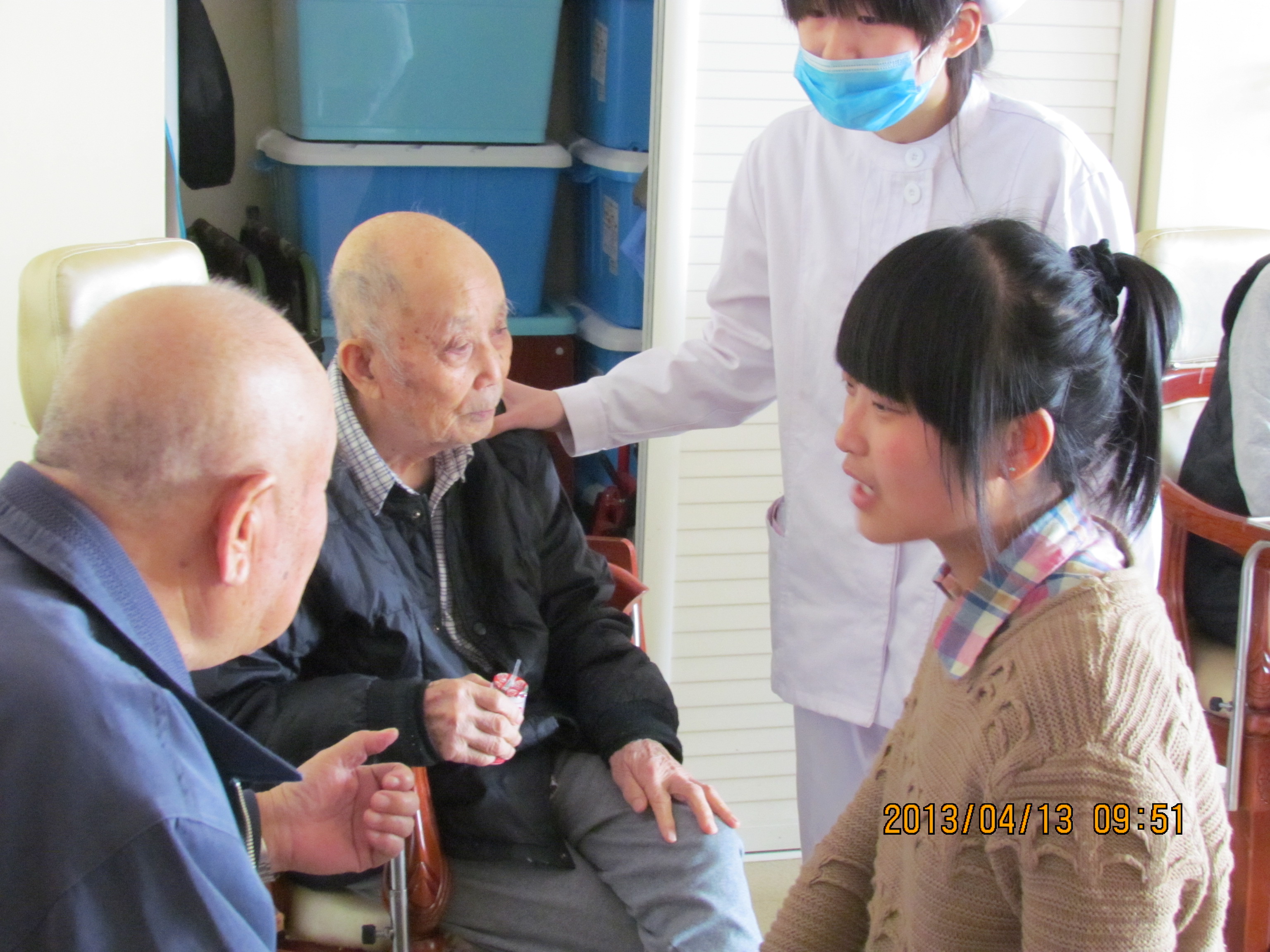 志愿者们刚走进老年公寓,便受到老年人们的欢迎。老人们热情的拉着志愿者的手,高兴地攀谈起来。志愿者们认真聆听老人们对精彩往事的回忆,看着这些高龄爷爷奶奶回忆往事时脸上那欢喜的表情,志愿者也由衷的高兴。老人们也用他们的亲身经历告诉我们要努力奋斗,要为国家建设贡献自己的力量。与老人们交流的同时,志愿者们还与老人们玩起了游戏。而此时的老人像孩子一样,享受着游戏的快乐。虽然大家是不同时代的人,但之间的交流是永恒的,通过这样的交流,使志愿者们获得了不少人生感悟,对自己的成长很有帮助。