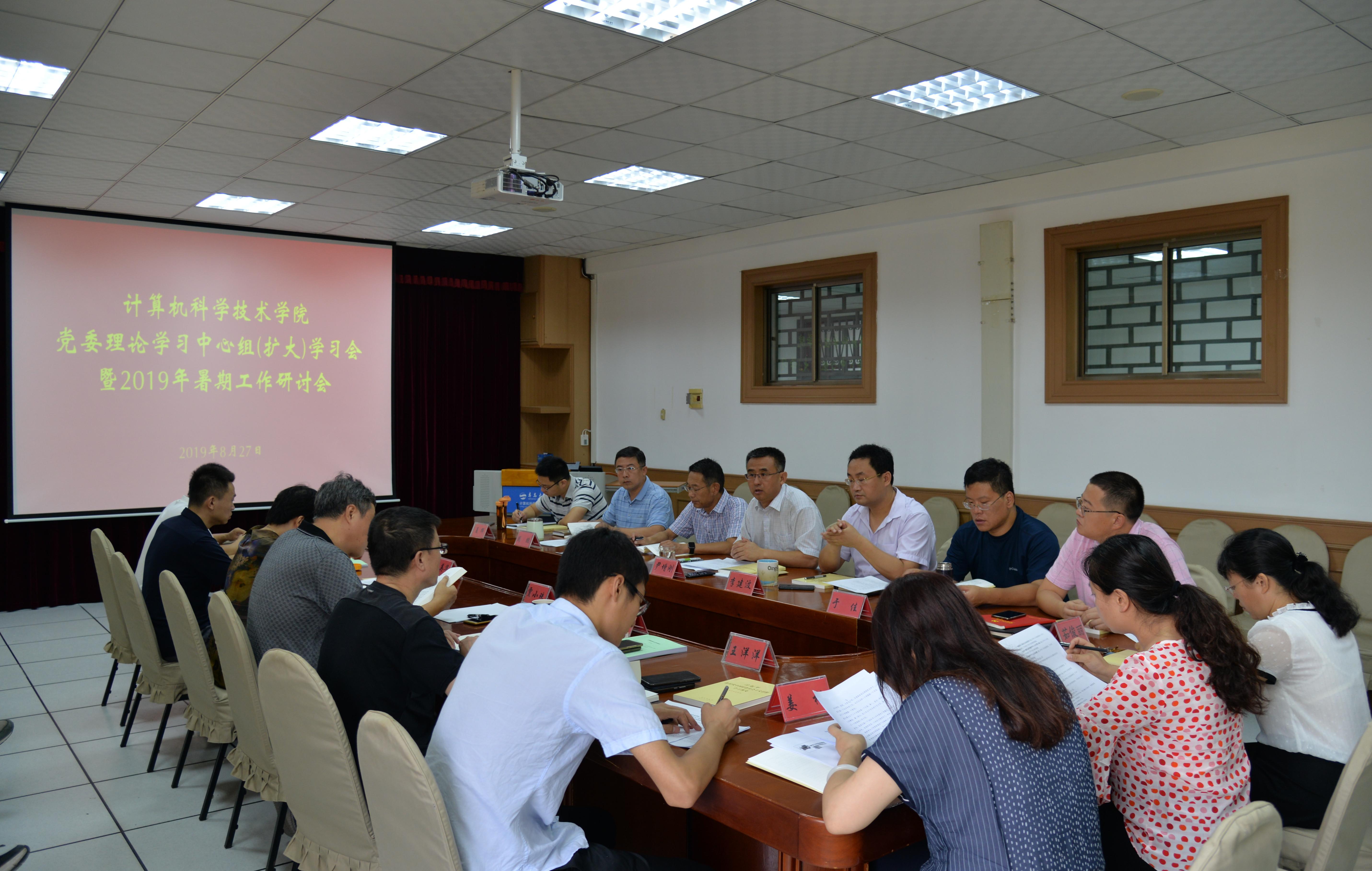 8月27日,院党委理论学习中心组(扩大)学习会暨2019年下半年工作研讨会在博知楼510会议室召开。与会人员集体学习了习近平总书记在“不忘初心、牢记使命”主题教育工作会议上的重要讲话精神。会议聚焦“一流本科”“一流学科”建设,对照学院2019年党政工作要点,总结上半年工作、部署下半年工作任务。