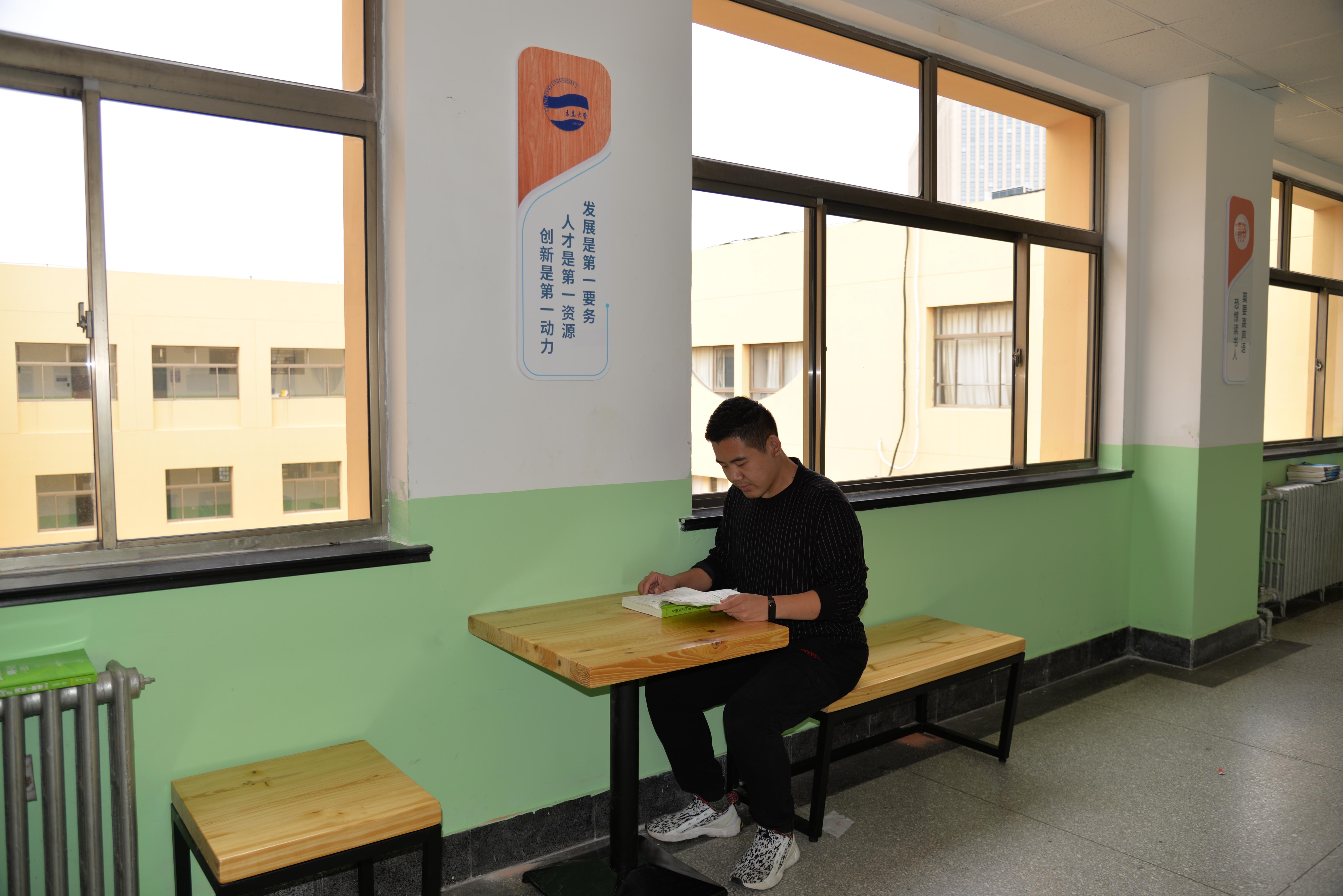 “特别喜欢学院打造的这条文化走廊,墙壁上有提醒我们不要虚度人生的句子,走廊上的原木桌椅也舒适耐看,感觉像在咖啡馆里。”当问及对学院刚刚打造的走廊文化区怎样评价时,物联网工程系2017级学生冯庆巍表达了自己实实在在的喜爱。