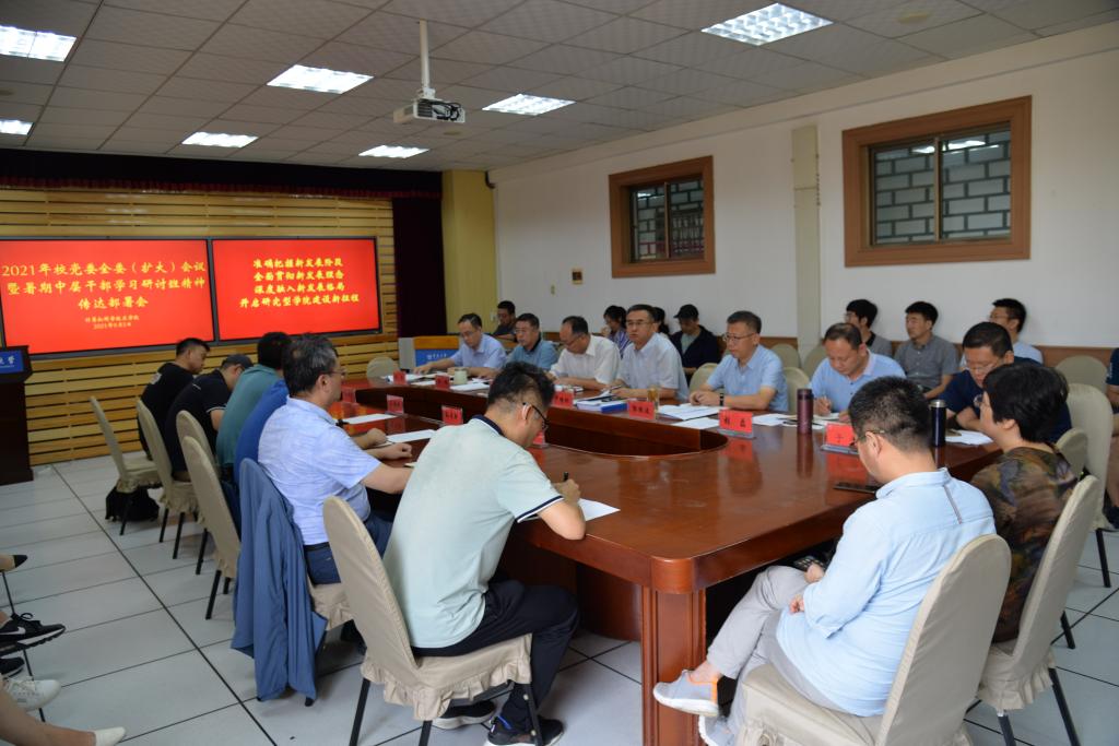9月5日上午,学院在博知楼510会议室召开会议,传达校党委全委(扩大)会议暨2021年暑期中层干部学习研讨班精神,部署落实措施。院党委书记尹增刚主持会议,院长郭振波,党委组织员毕叶,党委副书记张磊、周鹏,副院长于佳、周强、王国栋、孙更新,院长助理王宏韬、杜祥军,院机关党政管理人员、各教学系(中心)班子成员参加会议。