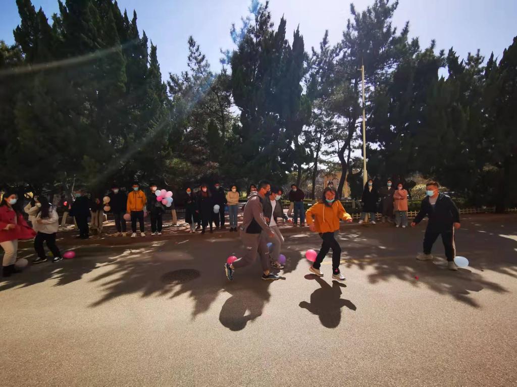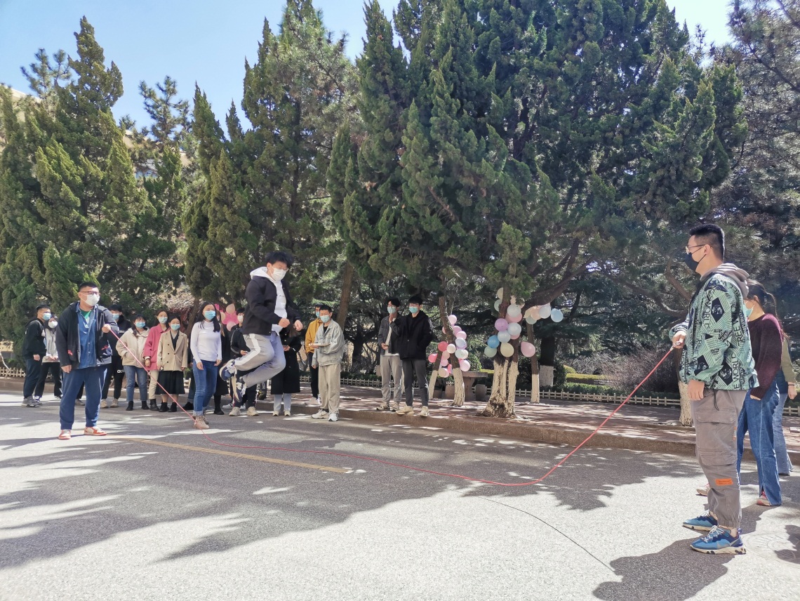日前,国产自拍av 在博知楼前举行“同心战‘疫’,激扬青春”师生趣味运动会,部分驻校教职工和研究生参加了跳大绳、三人四足、互踩气球等项目。师生们不惧疫情侵袭、不负满园春色,奋力比拼,欢声笑语不断,给疫情下的校园增添了青春的活力。