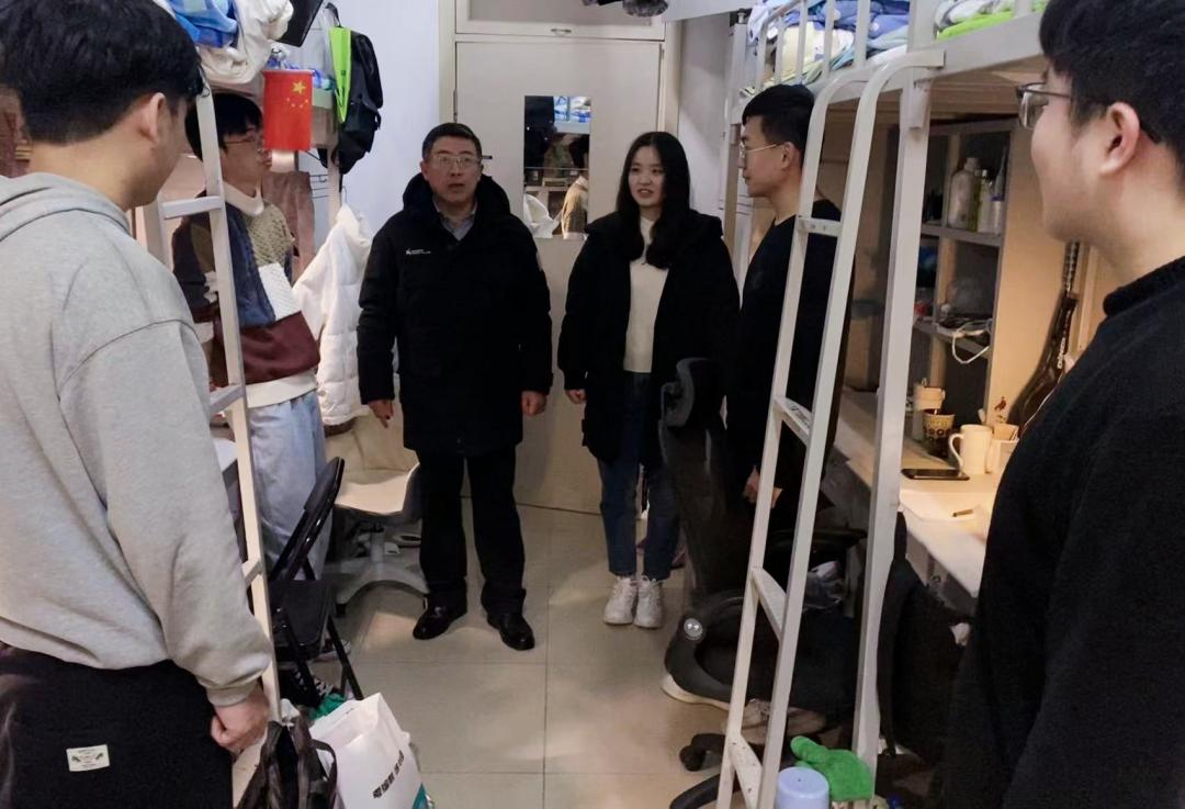 2月10、11、12日,国产自拍av 领导、辅导员老师前往浮山校区浮山公寓、滢园、泓园、浩园、汇园、浏园,金家岭校区湉园,与学生面对面沟通交流,及时了解学生的到校情况、假期学习状态、开学准备、思想动态、毕业论文、就业情况、生活情况等。他们亲切地鼓励同学们要尽快收心,以乐观的态度、饱满的精神、健康的体魄,积极迎接期末考试,全身心投入到新学期的学习与生活;详细地了解同学们的关注点,体察学生所需所求,协助相关部门解决学生问题。