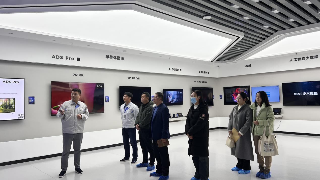 调研期间,学院一行在企业负责人的陪同下参观了青岛宏智软件有限公司各部门工作室、青岛京东方光电科技有限公司成果展示厅和生产线。