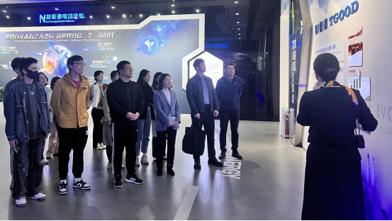 学院一行在企业负责人的陪同下,相继参观了新能源科技生态科技馆、电能汽车群智能充电区、新能源互联网云生态体验厅、生态党建展厅等展区,对公司发展历程、产品竞争优势、企业实力以及党建文化等方面有了进一步的认识。