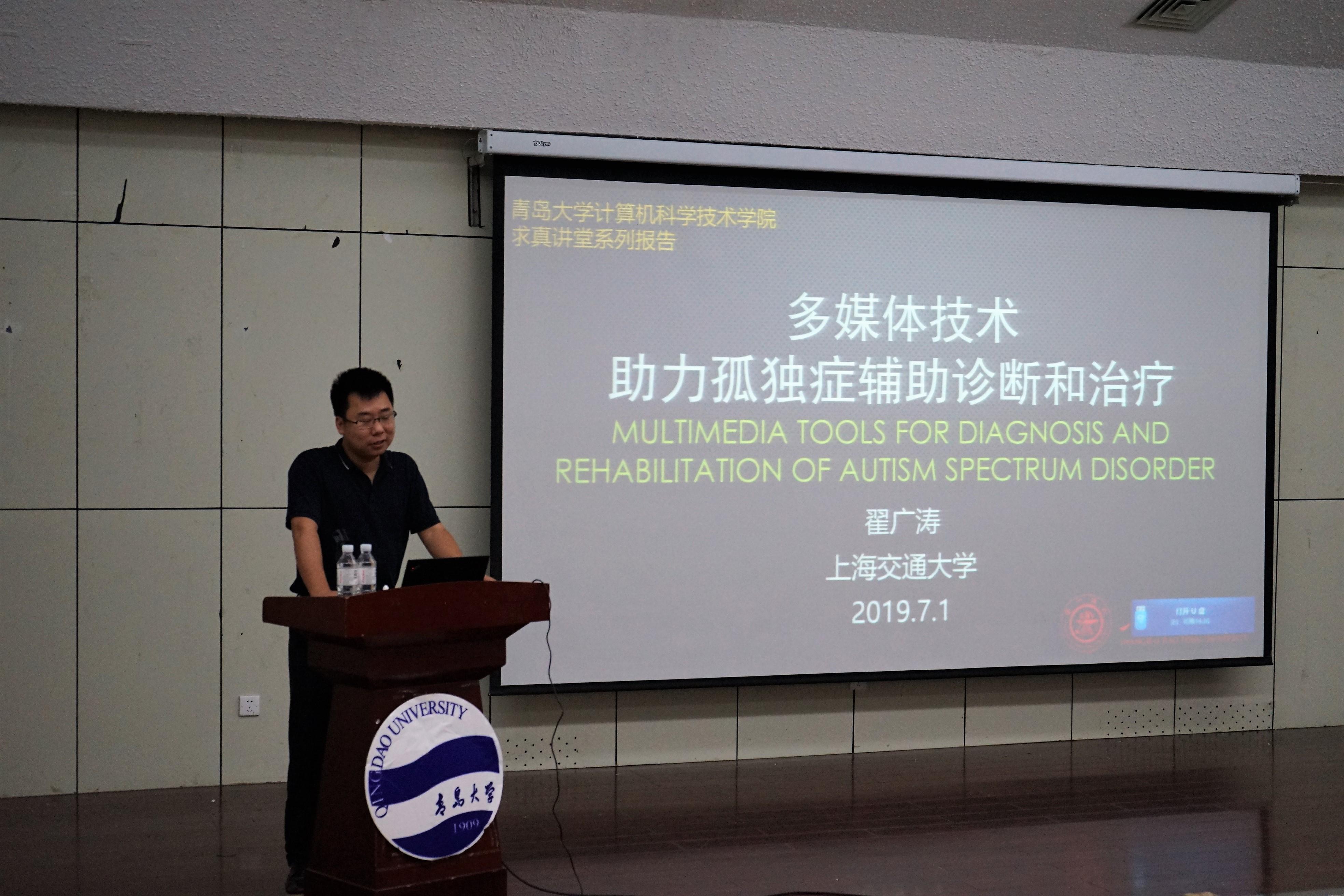 7月1日上午,上海交通大学著名教授翟广涛应邀在图书馆报告厅为国产自拍av 师生作了学院夏季学期高端学术报告第一讲——《多媒体技术助力孤独症辅助诊断和治疗》。学院100余名师生代表参加报告会。