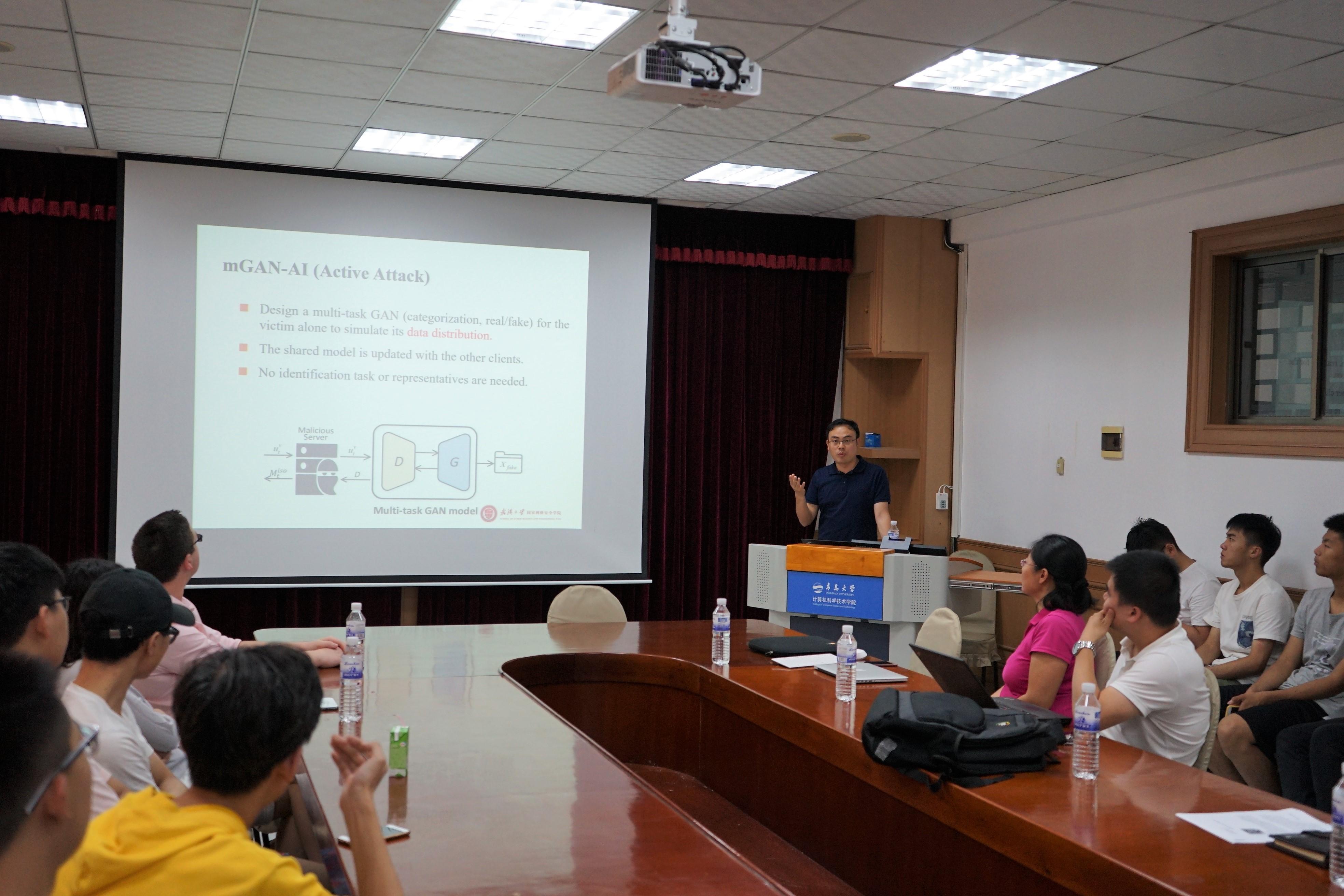 7月9日上午,武汉大学教授王志波应邀在博知楼510会议室为国产自拍av 师生作了题为《面向联邦学习的用户级隐私攻击》的夏季学期高端学术报告。100余名师生代表参加报告会。