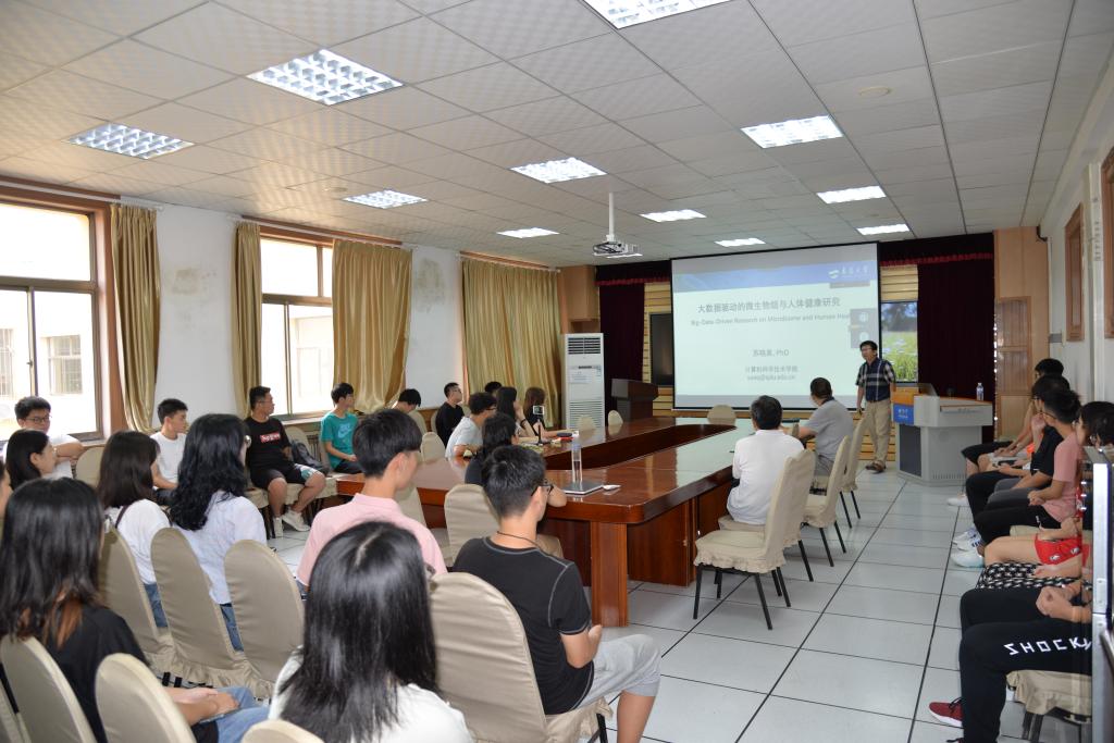 8月31日上午,苏晓泉教授做客学院“求真讲堂”,在博知楼510会议室为学院师生报告“大数据驱动的微生物组与人体健康研究”,这是学院第四场夏季学期高端学术报告。软件工程一级学科负责人潘振宽,副院长王国栋以及70余名师生代表参加报告会。