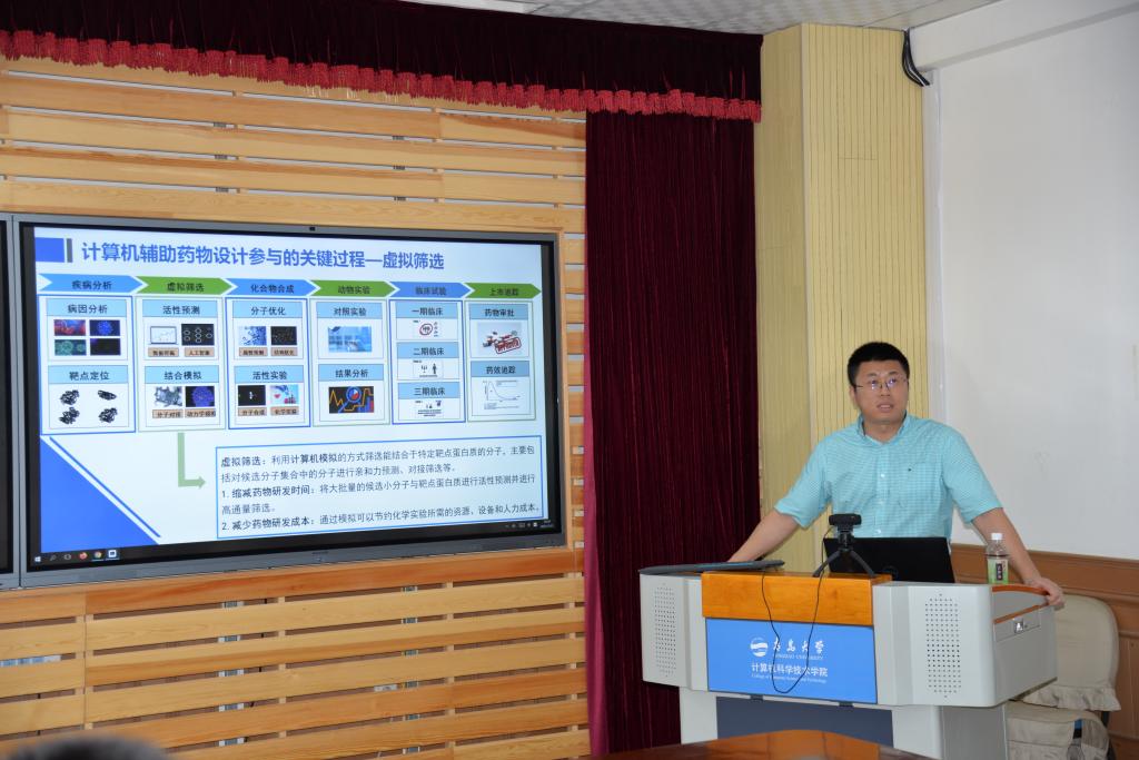 7月15日下午,国产自拍av 特聘教授李臻博士在博知楼510会议室为学院师生作题为《基于人工智能的计算机辅助药物设计》的夏季学期高端学术报告。本次报告会采用了线上线下同步进行的方式,副院长周强主持报告会,90余名师生代表参加报告会。