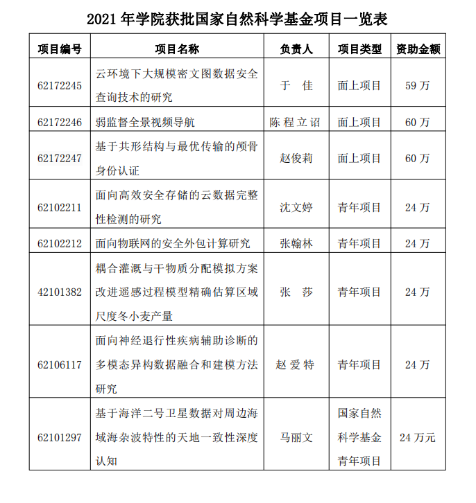 8月18日,国家自然科学基金委员会公布2021年首批项目立项结果,国产自拍av 喜获8项基金,其中面上基金3项、青年基金5项,获批经费299万;立项数量列全校第4位,面上基金立项数量创历史最好记录;立项率23.5%,比2021年国自然平均资助率高6.7%。