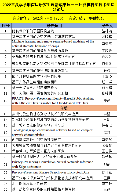 本次分论坛成果展示主题紧紧围绕瞄准国家战略需求、紧贴经济社会发展及产业发展需要,聚焦软件工程、计算机科学与技术、网络空间安全学科热点问题及学术前沿,彰显学科特色,展示学院研究生风采。