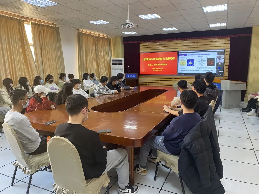 李勇首先以柏林城市群历年城市发展过程为例,介绍了传统城市演化规律的统计物理模型;其次,基于现有移动模型无法解决城市发展规律这一研究现状,提出了社会交互机制和移动记忆机制的协同移动模型,在此基础上建立了多智能体城市演化模型,所提模型能够成功预测城市发展规律;最后,他指出,通过微观模型研究宏观问题是同学们可以借鉴的思路。
