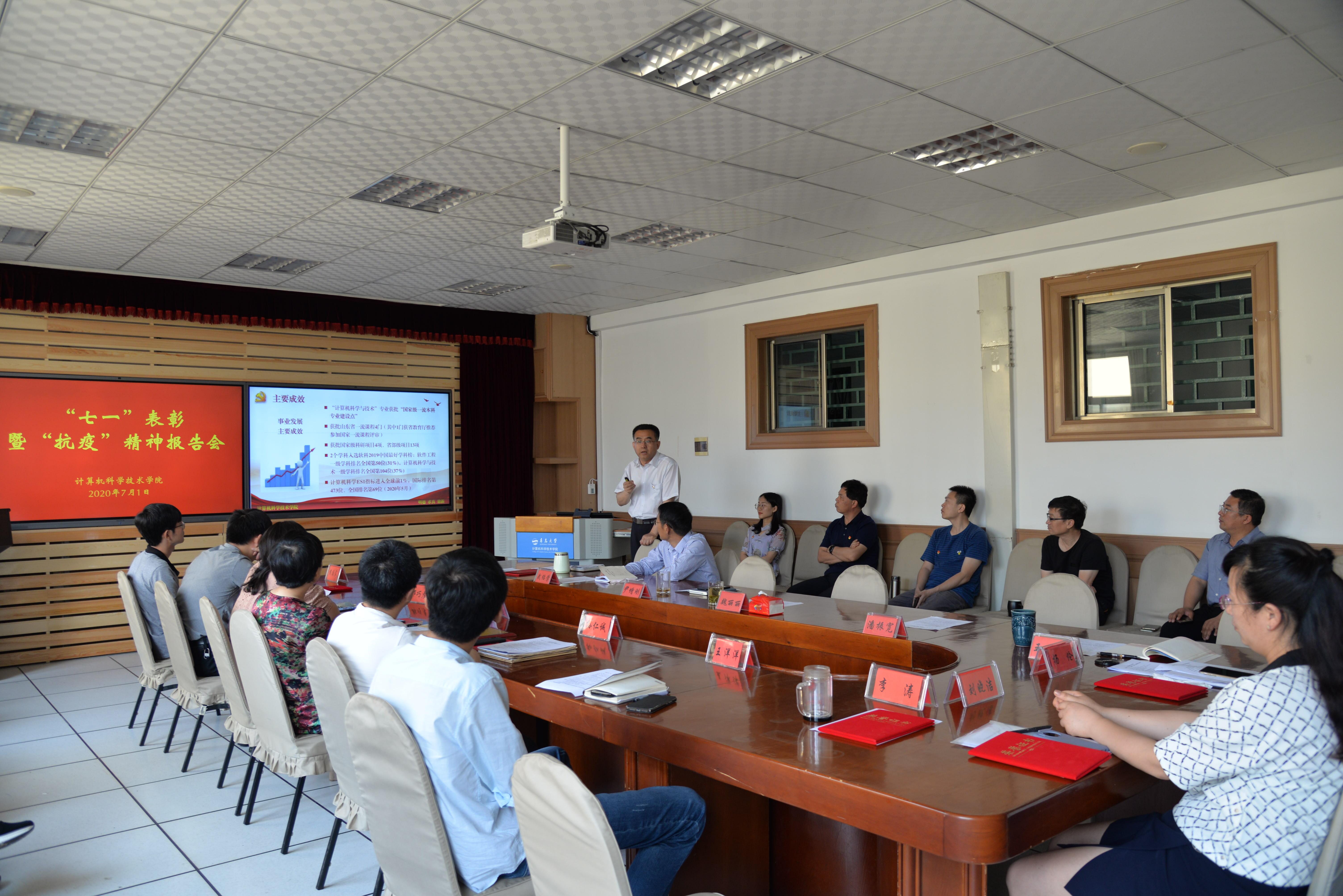 7月1日下午,国产自拍av 在博知楼510会议室召开“七一”表彰暨“抗疫”精神报告会。会议对校党委、院党委授予的先进集体和优秀个人进行了表彰,附属医院院长助理、护理部主任、援鄂医疗队副队长兼护理团队负责人魏丽丽作“抗疫”精神报告,院党委书记尹增刚作山东省首批党建工作标杆学院培育进展情况报告。50余名教职工党员和院机关全体工作人员参加会议。党委副书记周鹏主持会议。