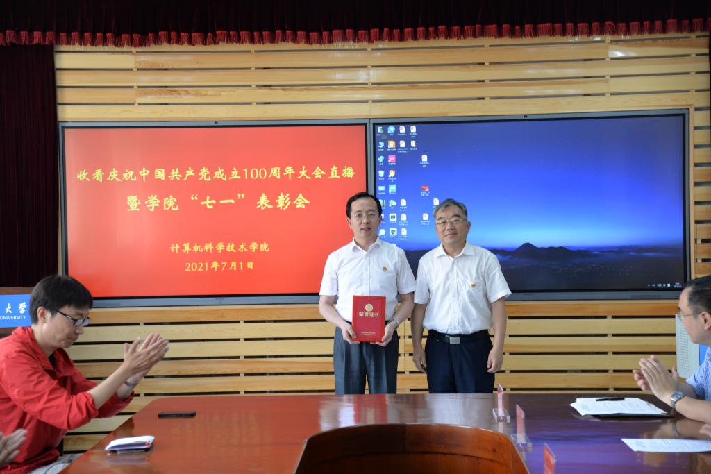 7月1日上午,学院在集体收看庆祝中国共产党成立100周年大会直播后,在博知楼510会议室举行了学院“七一”表彰会。院党委中心组成员,受到校党委和院党委表彰的优秀党员,院机关、教学系(中心)、学生党员代表等50余名同志参加表彰活动。