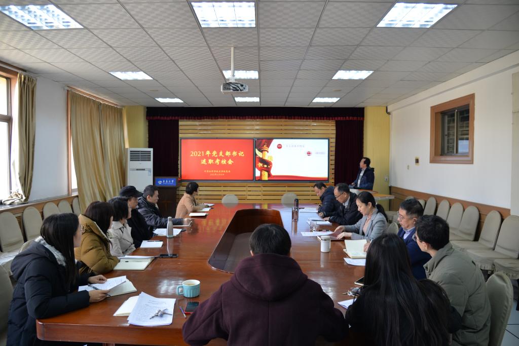 2月18日上午,学院2021年党支部书记述职评议会在博知楼510会议室召开。院党委书记潘秋鸿主持会议,党委组织员毕叶全程督导。院党委副书记张磊、周鹏,院党委机关党支部等11位党支部书记参加会议。
