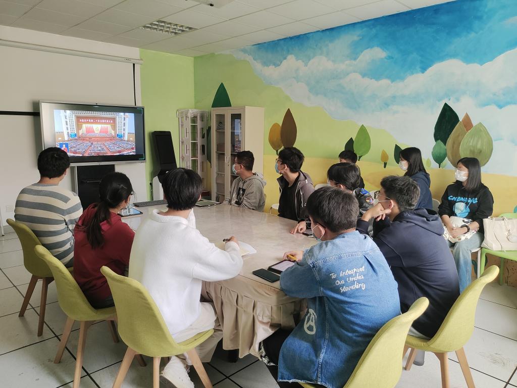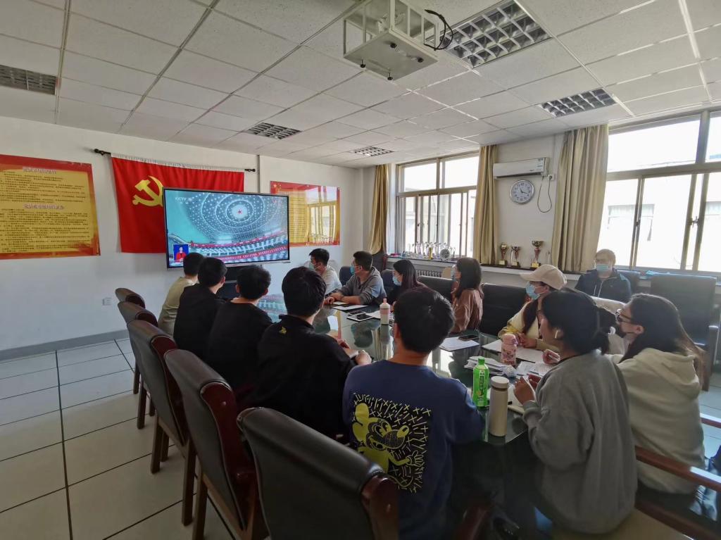 10月16日上午,国产自拍av 组织全体党员干部、共青团员以理论学习中心组、党支部、团支部、宿舍为单位收看中国共产党第二十次全国代表大会开幕实况直播。院党委书记潘秋鸿,院长郭振波参加了在博知楼510会议室的集中收看活动,并和师生党员交流学习体会。
