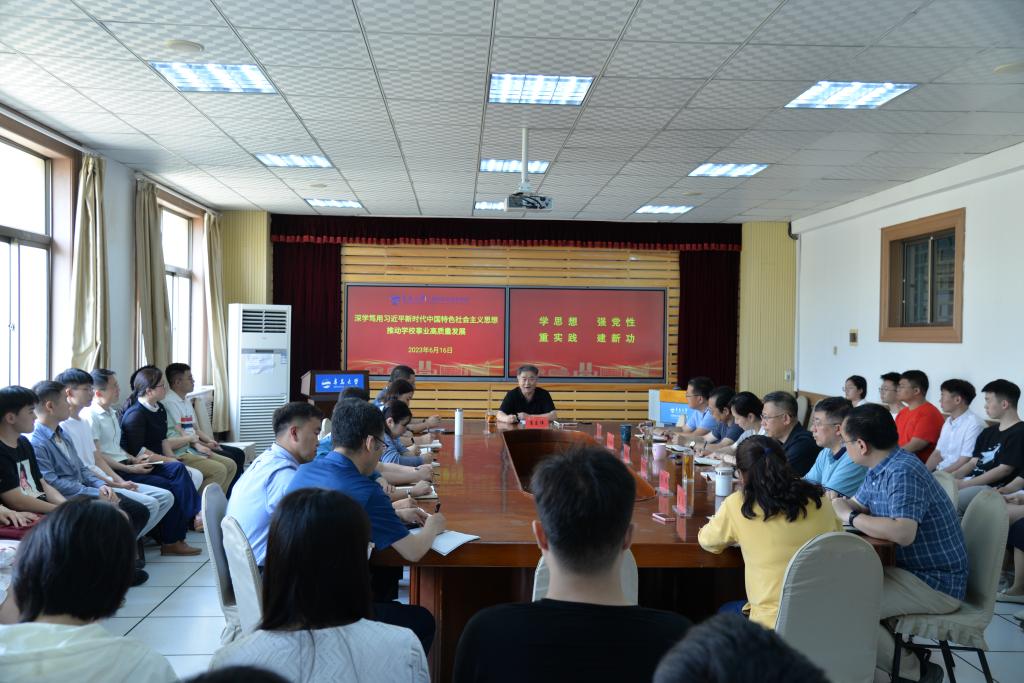 6月16日下午,校长夏东伟以《深学笃用习近平新时代中国特色社会主义思想推动学校事业高质量发展》为题,在博知楼510会议室为国产自拍av 师生代表讲授主题教育专题党课。学院党委书记潘秋鸿主持学习活动。
