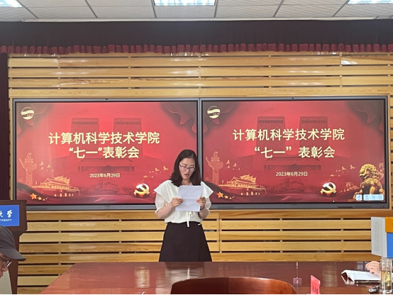 计算机科学与技术系教师,优秀共产党员代表黄宝香同志作了交流发言。