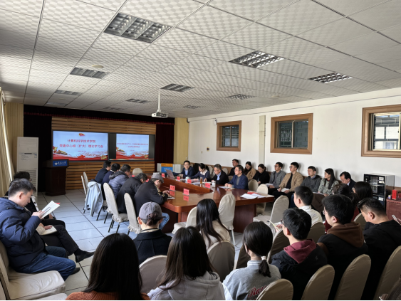 328午,院党委理论学习中心组(扩大)在博知楼510会议室举行全国两会精神专题集体学习会。院党委书记潘秋鸿主持学习会,院长郭振波,党委组织员赵书鹏,党委副书记周鹏,副院长王国栋、杨斌(挂职),院长助理杜祥军、苏晓泉,各党支部书记、教学系(中心)主任、院机关支部党员、各党支部委员,学生党员代表参加学习。