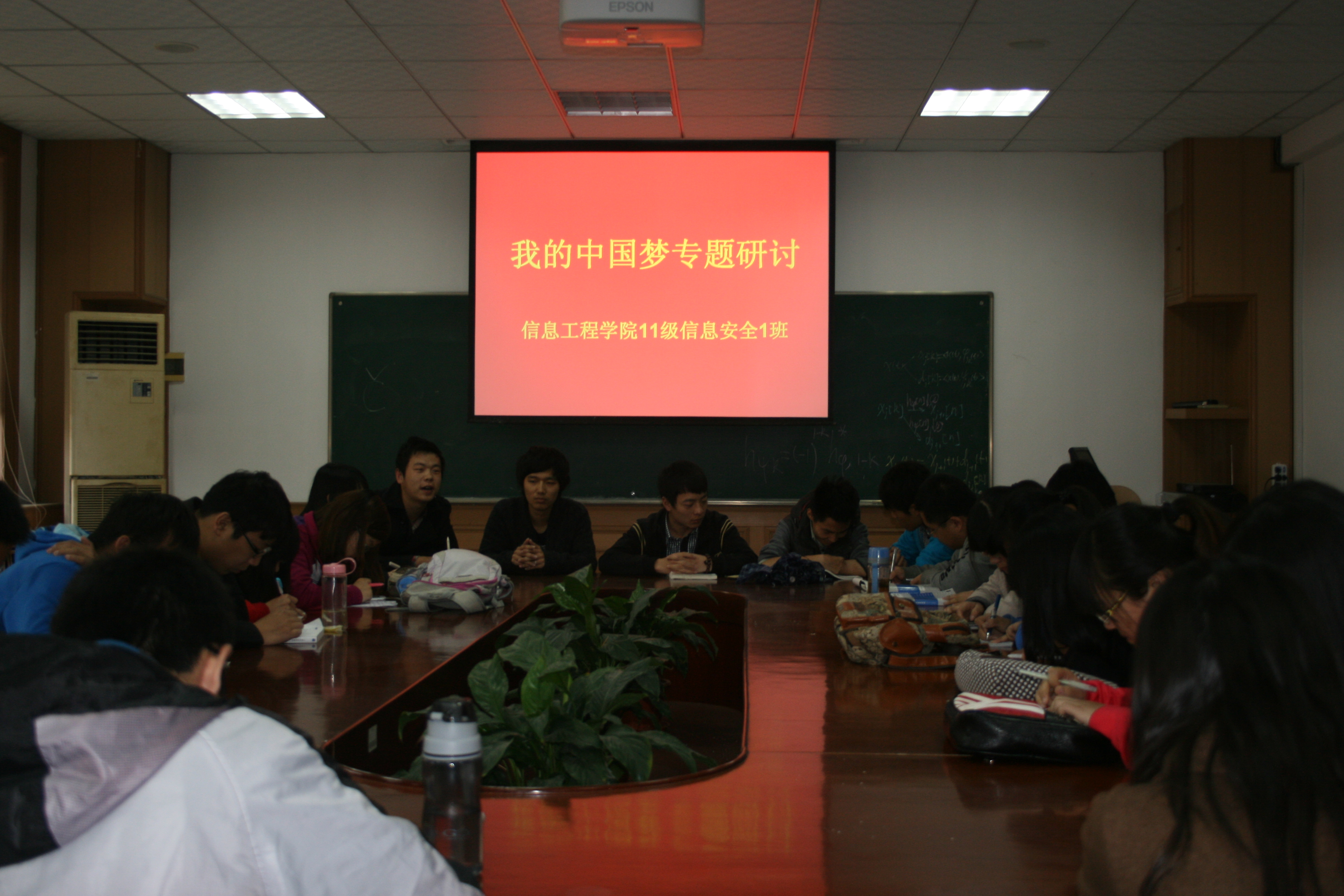 5月3日下午,根据校团委关于组织开展“我的中国梦”线下主题团日活动的要求,国产自拍av 2011级信息安全1班全体同学在团总支书记于文洁老师的带领下,围绕“什么是中国梦”、“如何实现中国梦”、“青年学生与中国梦的关系”话题进行互动讨论,同学们积极踊跃参加,分享对“中国梦”的深刻理解。