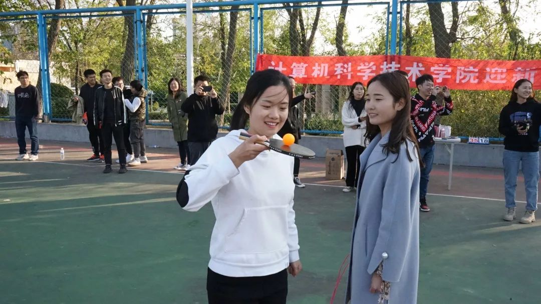 在中场休息阶段进行的是“趣味运动”比赛--乒乓球障碍接力跑。参加比赛的同学按照级部分成两队,最先完成指定任务的队伍视为胜利队。经过热闹激烈的竞争,趣味运动比赛在一片欢声笑语中结束,研一同学以微弱优势获得胜利,并为篮球赛的新生队赢得了额外的比分,缩小了篮球赛对阵双方的比分差距,使得比赛结果更加充满悬念。