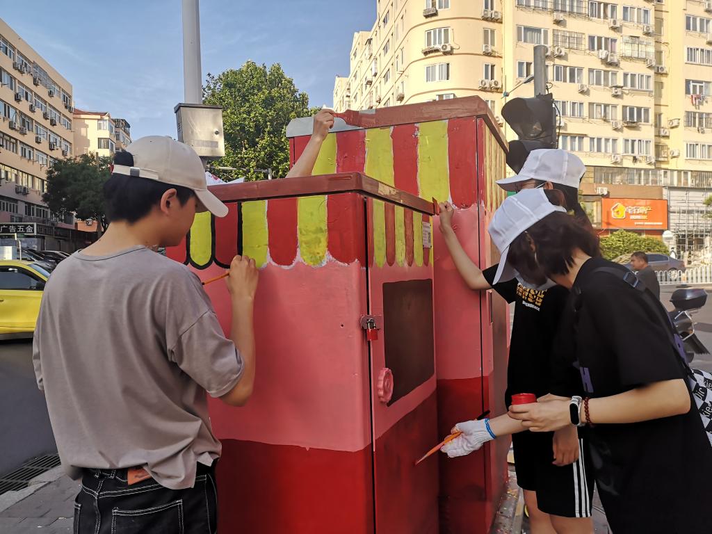 近日,国产自拍av 数字媒体专业学生受大港街道新时代文明实践所邀请,以“迎接建党一百周年”“文明出行”“节约粮食”等为主题,为长春路、华阳路周边配电箱绘制彩色“新衣”,助力全国文明典范城市和国家卫生城市创建。