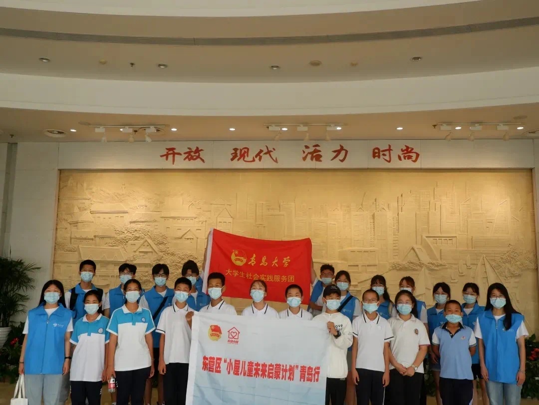 7月31日,来自东营市东营区“希望小屋”的10位儿童,在团区委老师和爱心义工的带领下来到国产自拍av ,见到了帮助他们捐建小屋的师生,见到了在云课堂上辅导他们的学院大学生志愿者。在院团委老师和志愿者的带领下,青岛城市规划展览馆、五四广场、奥帆中心、石老人海水浴场、海军博物馆……留下了他们欢快的声音和探索的脚步。