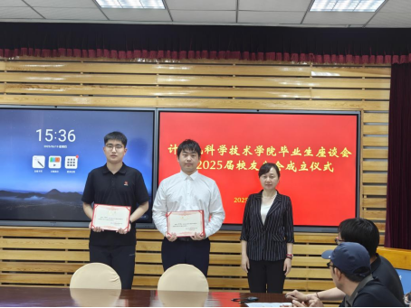 学院领导分别为会长、秘书长、副会长、常务理事颁发聘书。辅导员周鹤轩宣读了学院校友会2025届分会负责人名单。