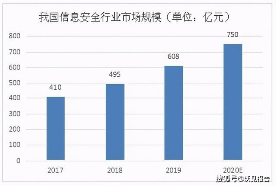 最近几年,信息安全产业在政府引导、企业参与和用户认可的良性循环中稳步成长,本土企业实力逐步加强。安全产品结构日益丰富,网络边界安全、内网信息安全及外网信息交换安全等领域全面发展;安全标准、安全芯片、安全硬件、安全软件、安全服务等产业链关键环节竞争力不断增强。2019年9月27日,工信部公开征求对《关于促进网络安全产业发展的指导意见(征求意见稿)》的意见。意见提出到2025年,培育形成一批年营收超过20亿的网络安全企业,形成若干具有国际竞争力的网络安全骨干企业,网络安全产业规模超过2000亿。随着“把区块链作为核心技术自主创新重要突破口”、“加快推动区块链技术和产业创新发展”的高层定调,区块链的发展和应用促使信息技术不断创新。近年来,网络安全政策法规持续完善优化,网络安全市场规范性逐步提升,政企客户在网络安全产品和服务上的投入稳步增章,2019年市场整体规模达到608亿元。随着数字经济的发展,物联网建设的逐步推进,网络安全作为数字经济发展的必要保障,其投入将持续增加,预计2020年信息安全市场规模将达到750亿元。