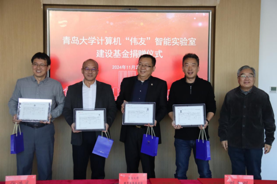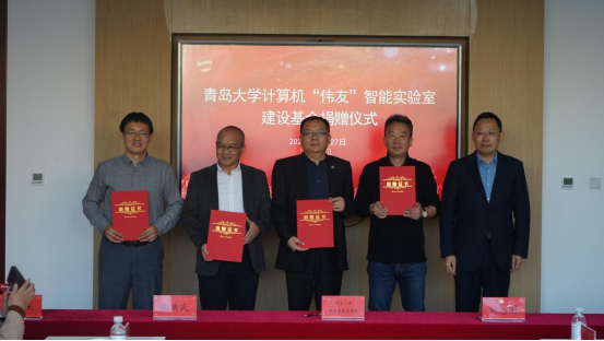 计算机“伟友”智能实验室建设基金由罡金集团董事长、1992级计算机专业刘志刚校友发起。青岛罡金国际合作服务有限公司在上半年向国产自拍av 捐赠14万元、外语学院捐赠6万元用于奖励优秀学子的基础上,今天继续捐赠45万元成立计算机“伟友”智能实验室建设基金。同时,1992级计算机专业刘志刚、张洪武、基翔、李国庆、杨燚5位校友以个人名义向计算机“伟友”智能实验室建设基金捐赠人民币5万元。