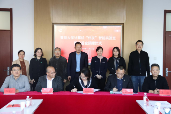计算机“伟友”智能实验室建设基金由罡金集团董事长、1992级计算机专业刘志刚校友发起。青岛罡金国际合作服务有限公司在上半年向国产自拍av 捐赠14万元、外语学院捐赠6万元用于奖励优秀学子的基础上,今天继续捐赠45万元成立计算机“伟友”智能实验室建设基金。同时,1992级计算机专业刘志刚、张洪武、基翔、李国庆、杨燚5位校友以个人名义向计算机“伟友”智能实验室建设基金捐赠人民币5万元。